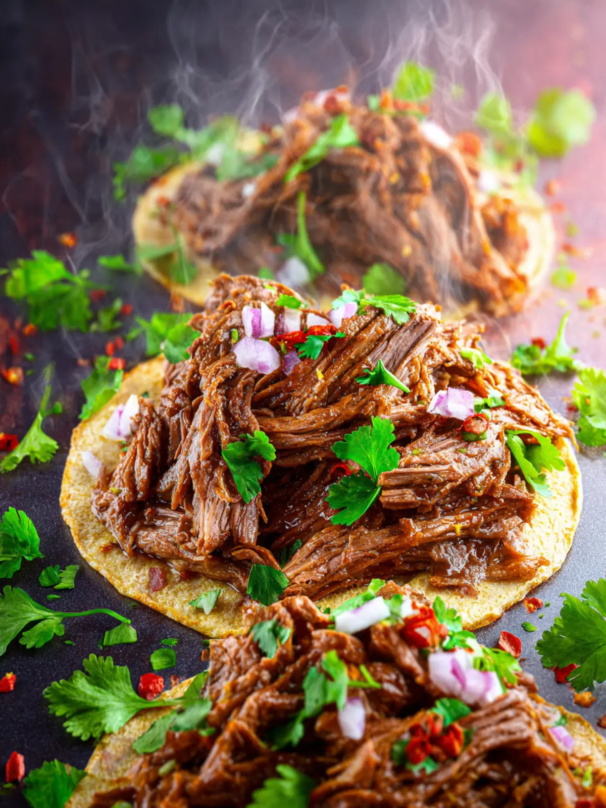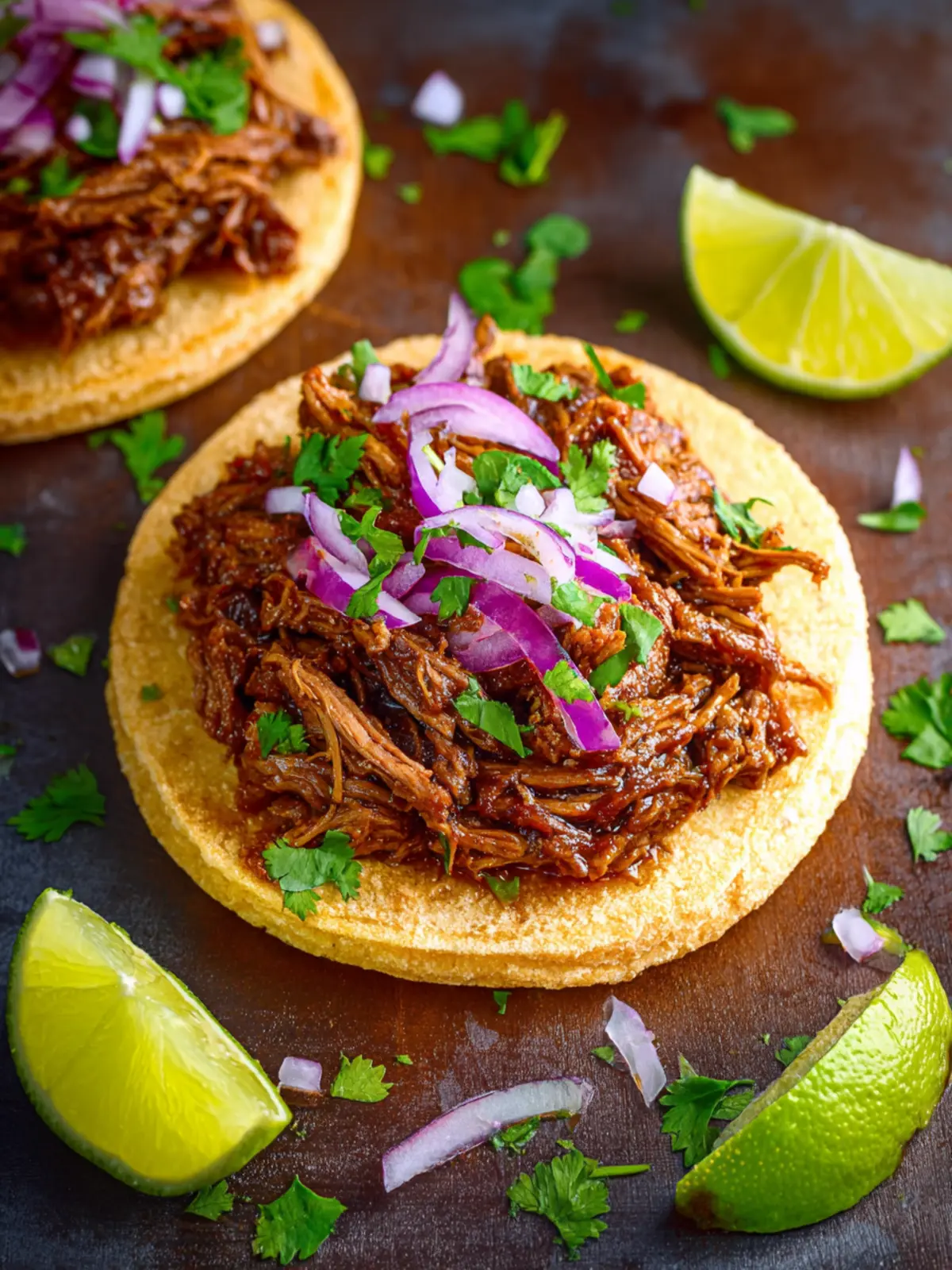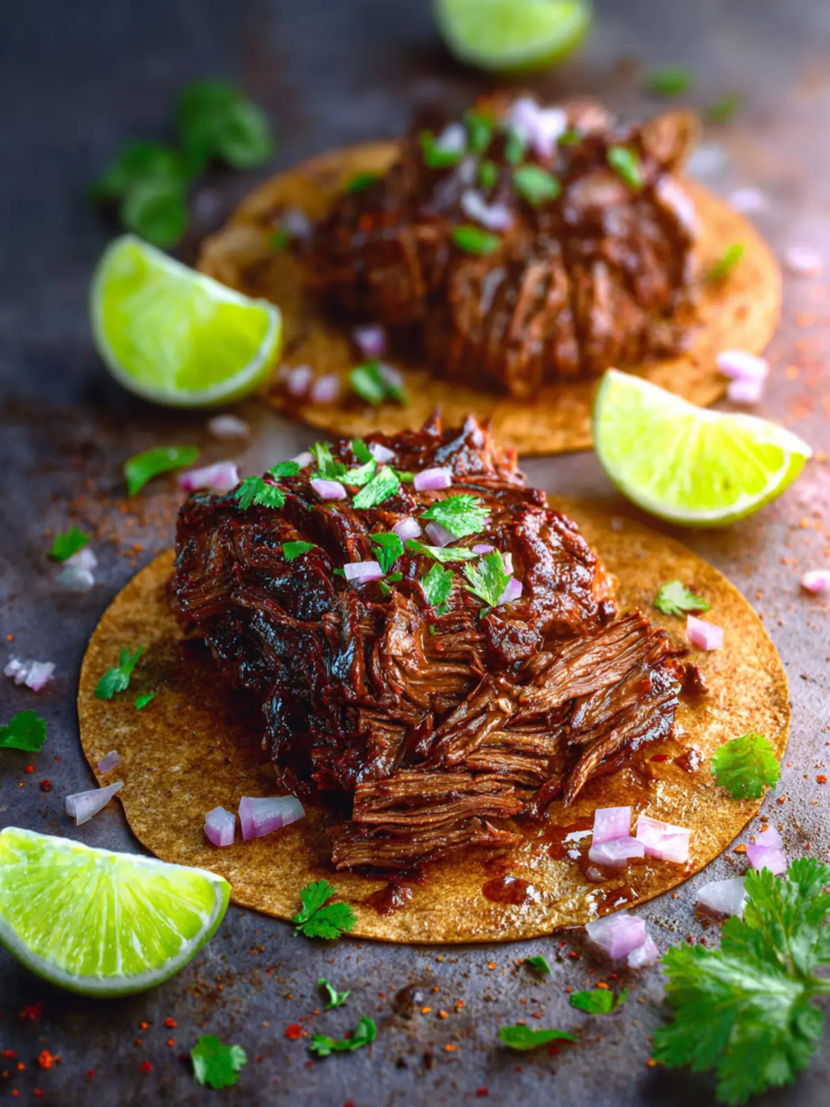 Slow-cooked, tender beef barbacoa seasoned with spices and served in warm tortillas for a flavorful meal.