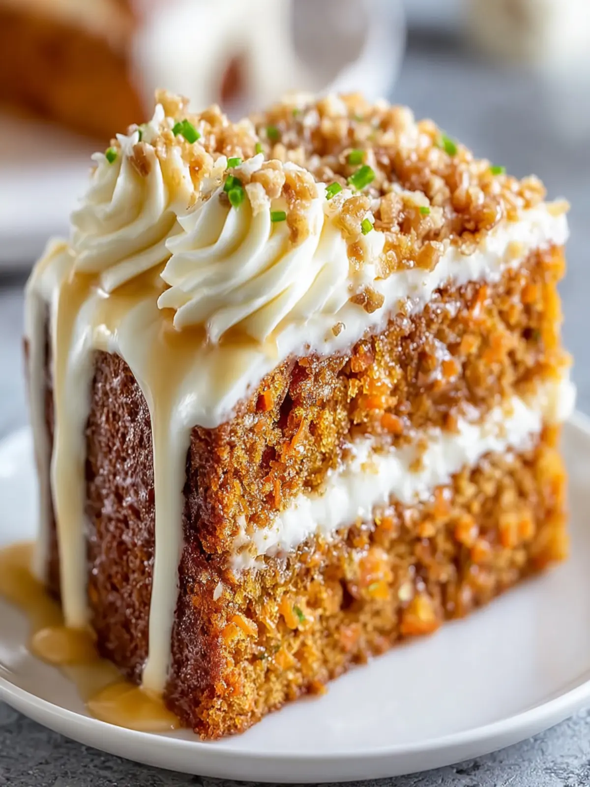 A slice of carrot cake pairs beautifully with a steaming cup of coffee or tea. The cake’s spices complement a robust espresso or a delicate herbal tea, creating a cozy moment perfect for unwinding. For an extra special touch, try serving it with a dollop of whipped cream or a scoop of vanilla ice cream on the side—just imagine that creamy contrast against the spiced cake!