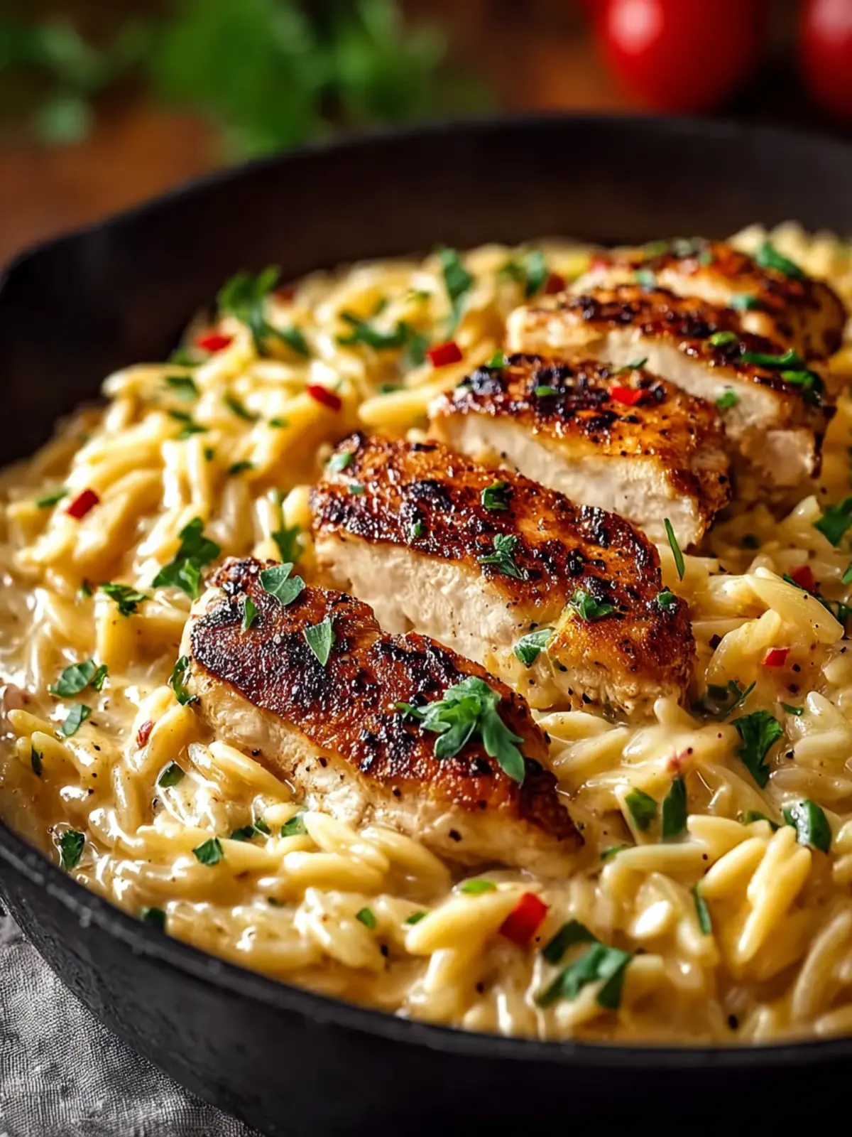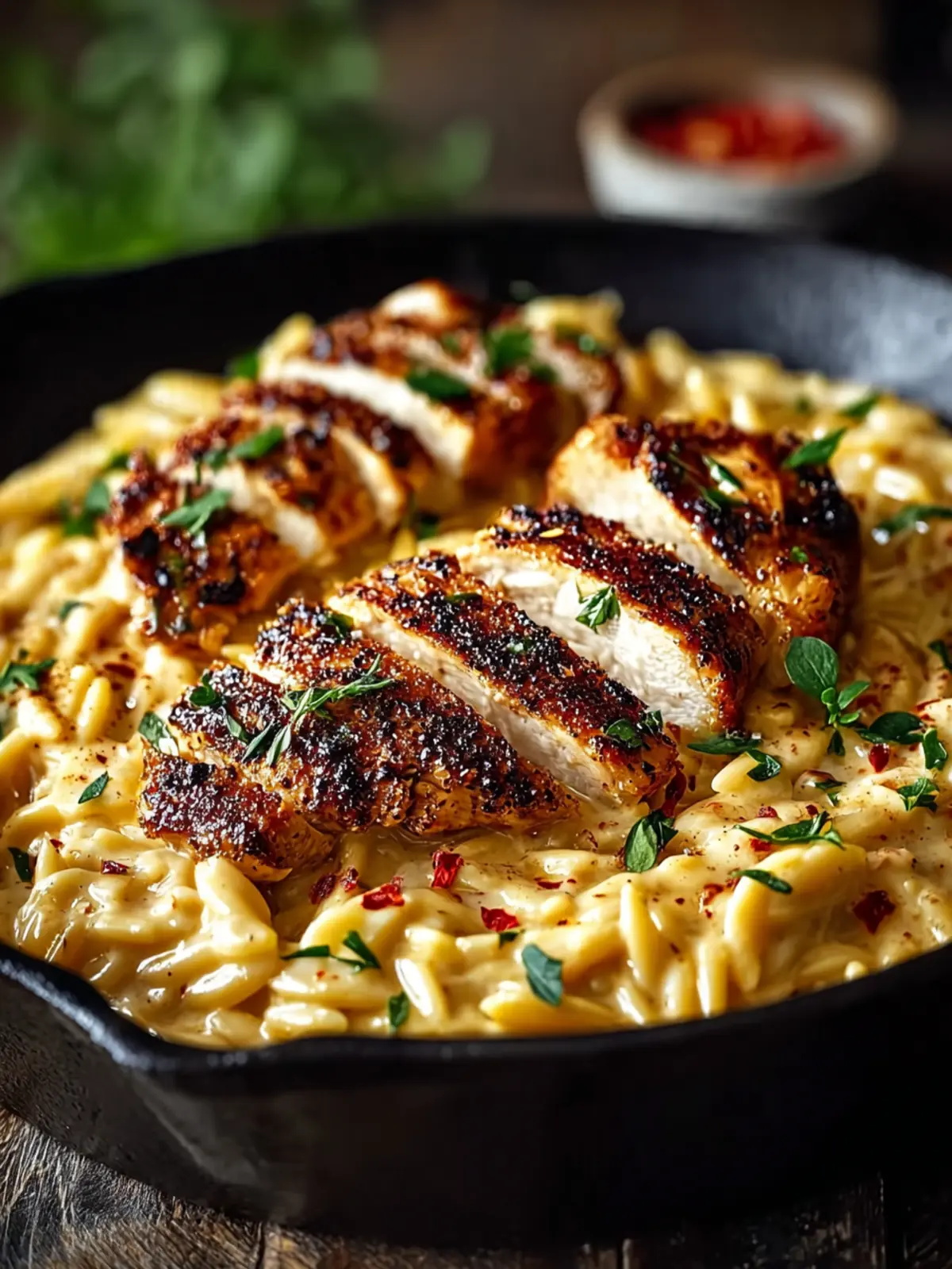 Feel free to customize your Cajun Chicken Alfredo Orzo experience. Think about garnishing it with: