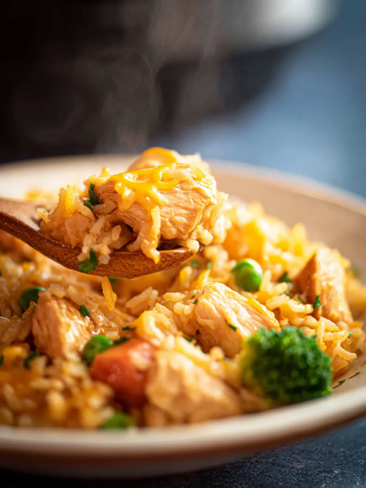 Family-Friendly Flavor: Everyone loves cheese, and this dish delivers that creamy, cheesy texture that kids and adults alike can’t resist. The combination of tender chicken, fluffy rice, and gooey cheese makes it a hit at the dinner table. It’s the kind of dish that encourages everyone to gather around, share stories, and savor each delicious bite together.