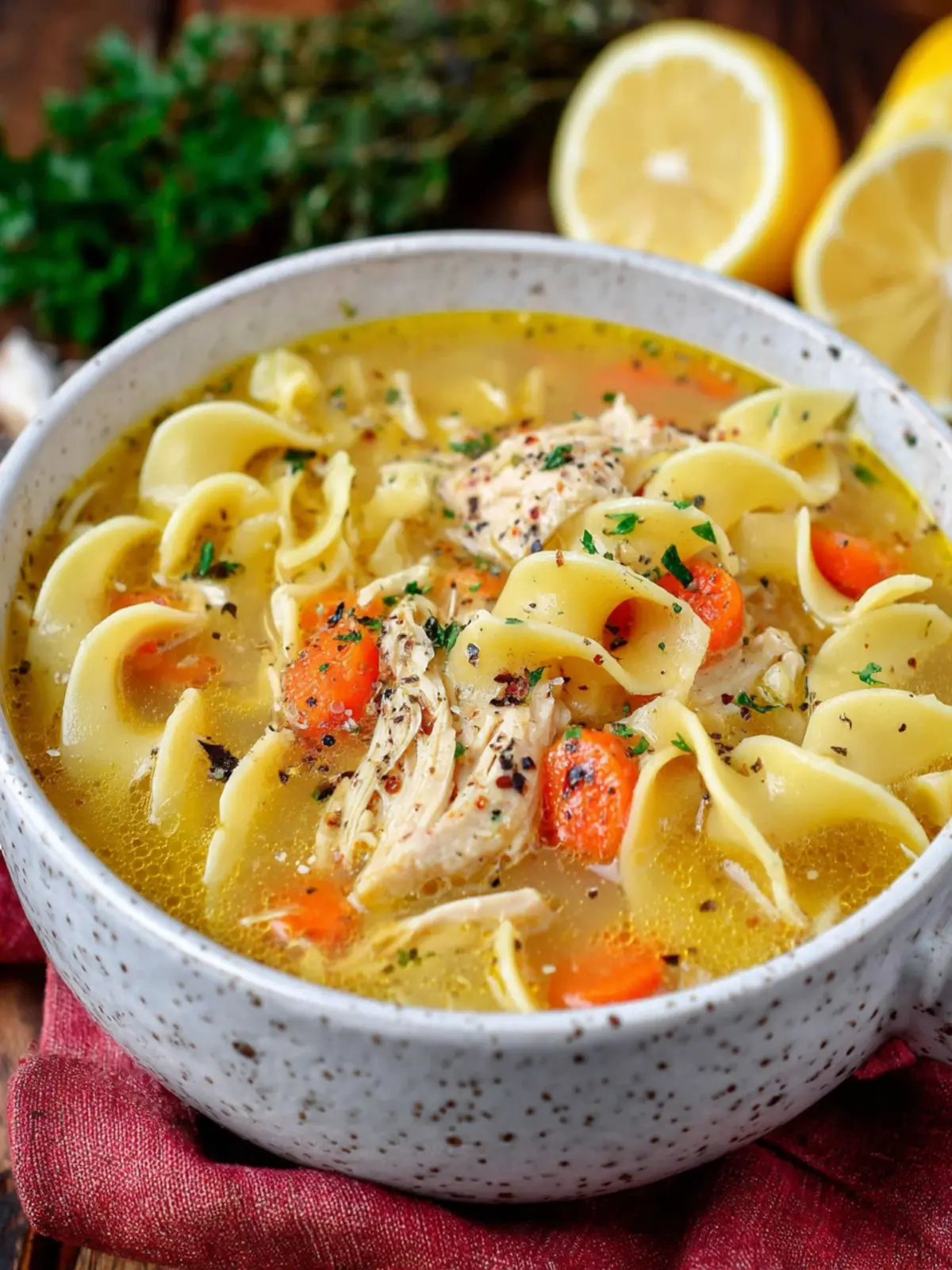 Noodles: I prefer using egg noodles in this recipe for their delightful chewiness. They soak up the broth beautifully and keep the texture just right.