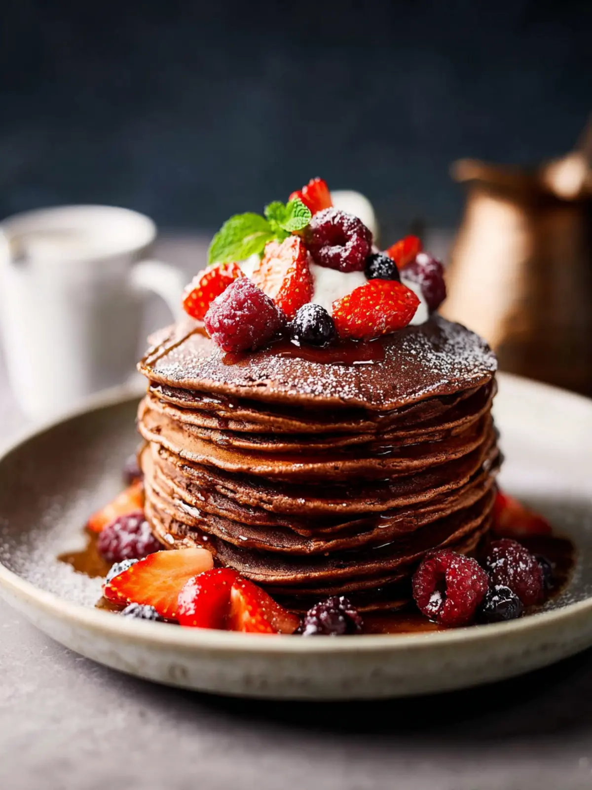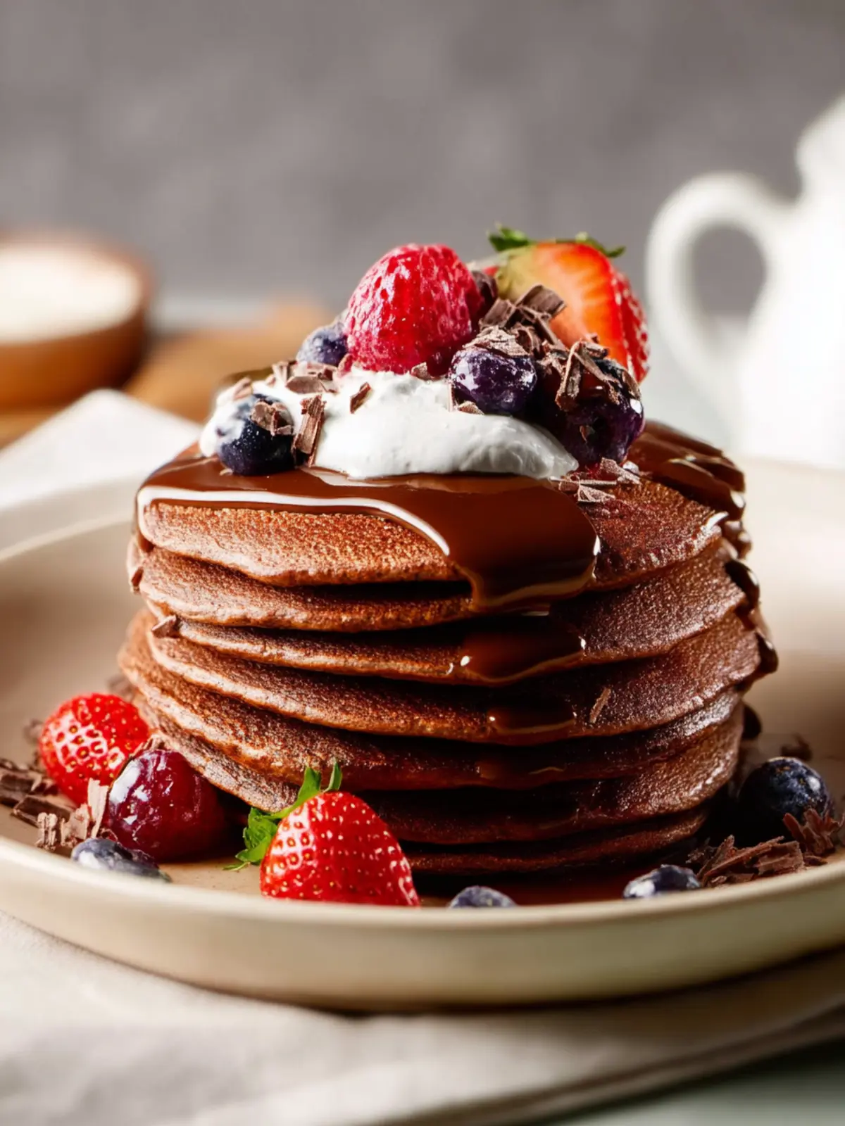 Delicious and fluffy chocolate pancakes perfect for breakfast.