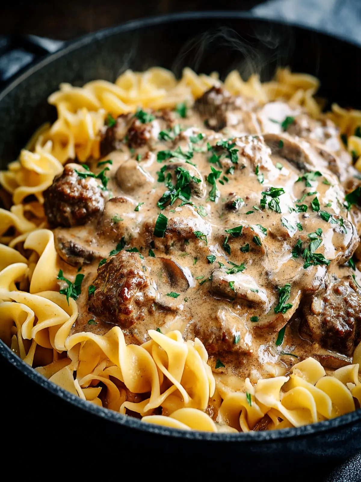 Mushrooms: Fresh mushrooms bring an earthy flavor that complements the beef beautifully. Sautéing them until golden not only enhances that flavor but adds a lovely texture that contrasts with the creamy sauce.