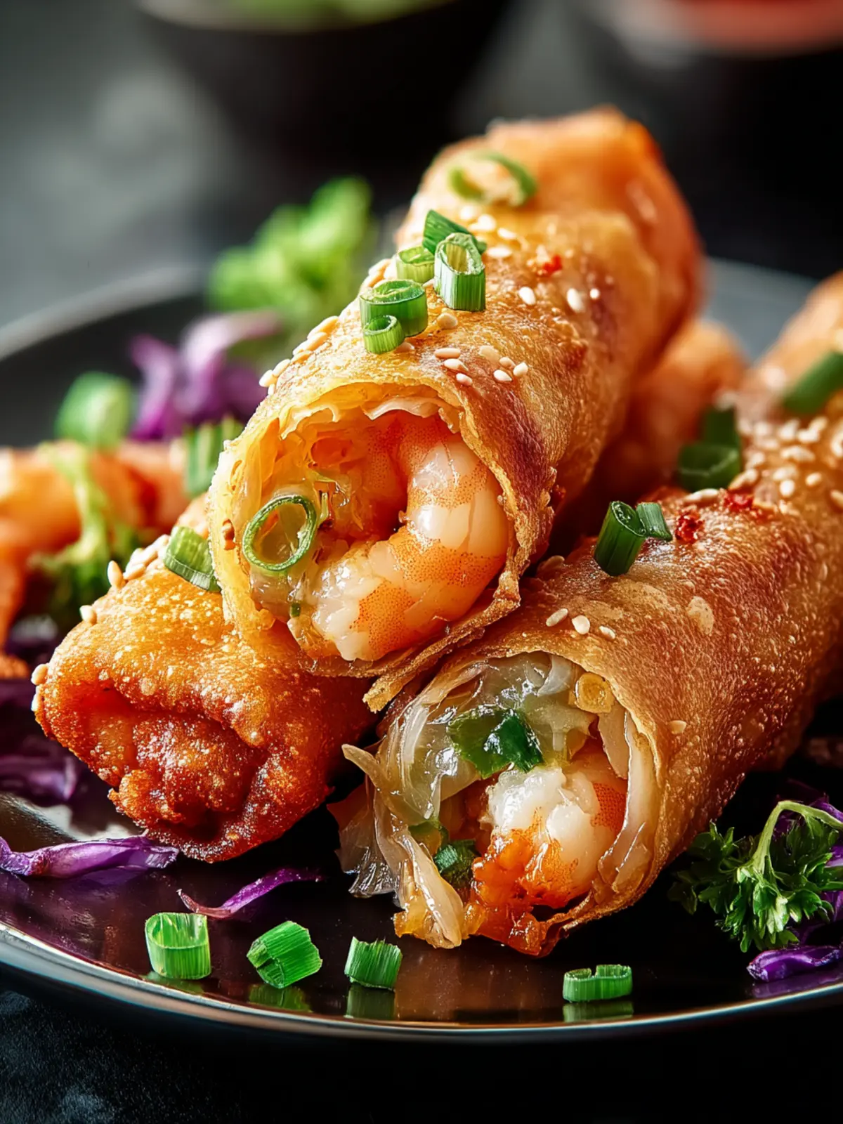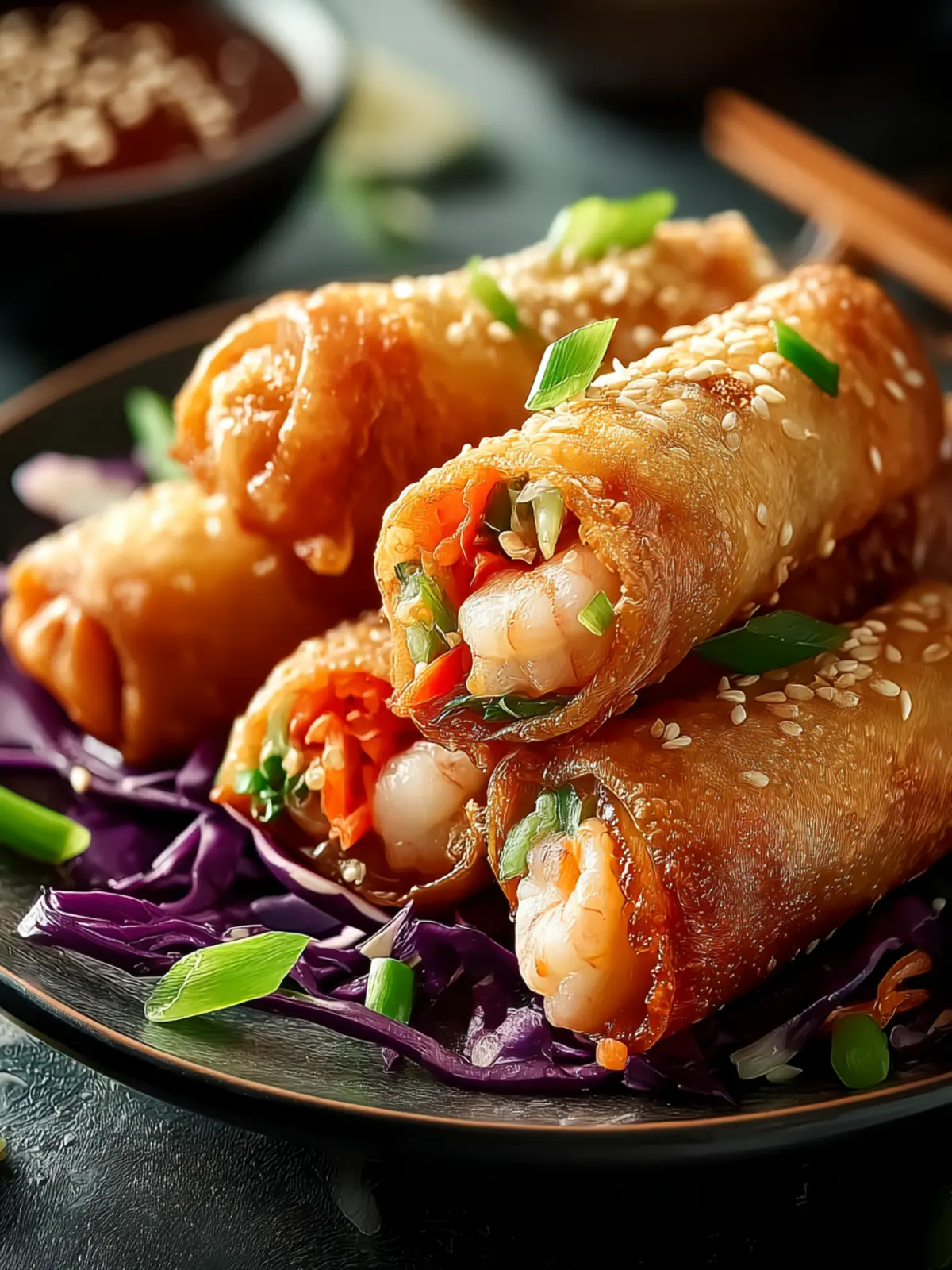 Imagine taking that first bite: the crispy exterior gives way to a savory filling of tender shrimp, fresh cabbage, and flavorful spices. Each roll is like a little pocket of joy, bursting with flavors that dance on your palate.