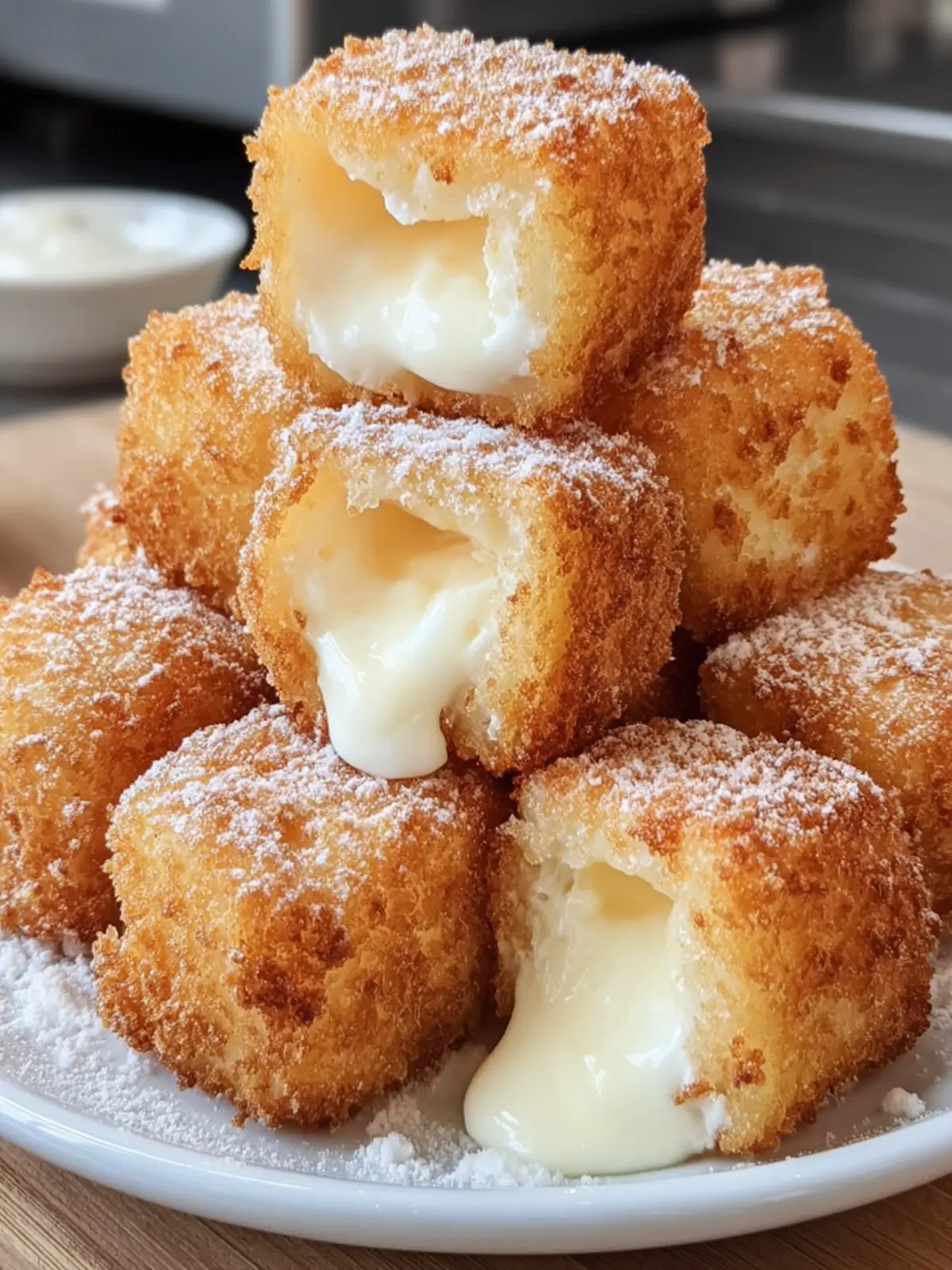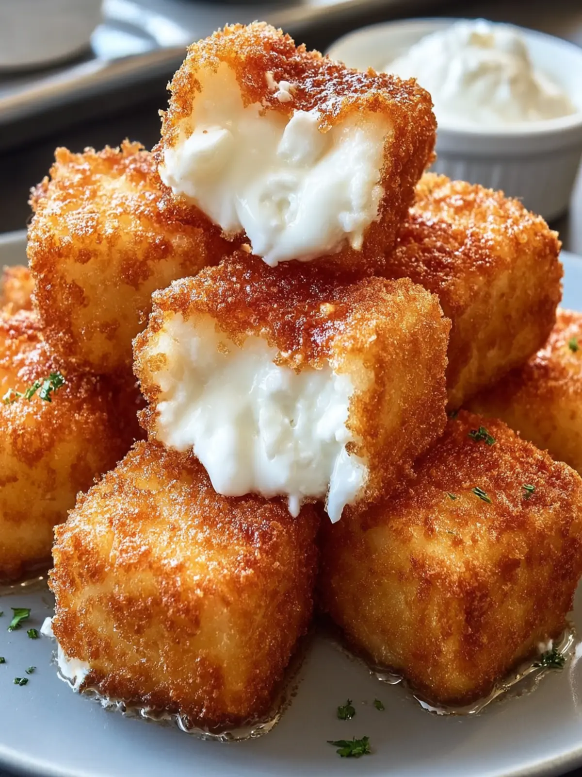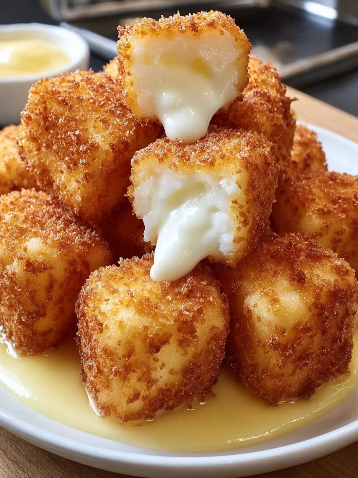 Delicious golden fried milk cubes that are creamy on the inside and crispy on the outside.