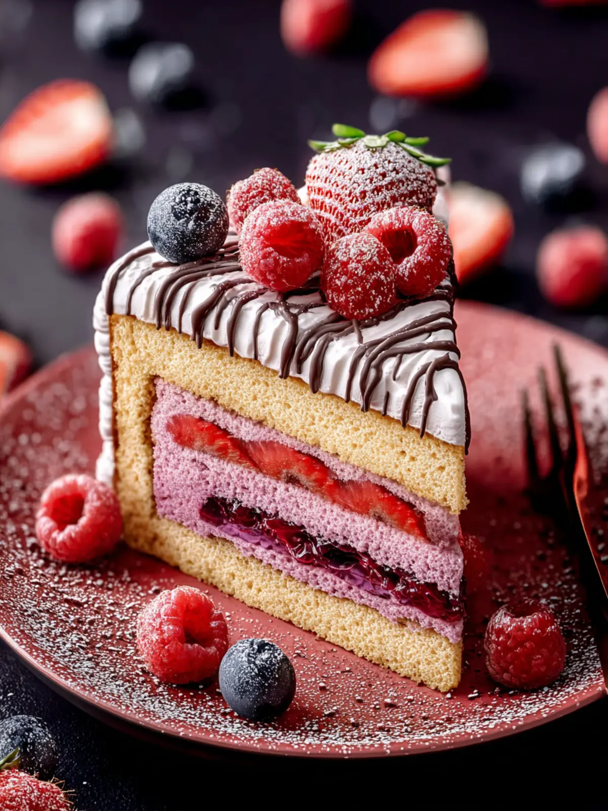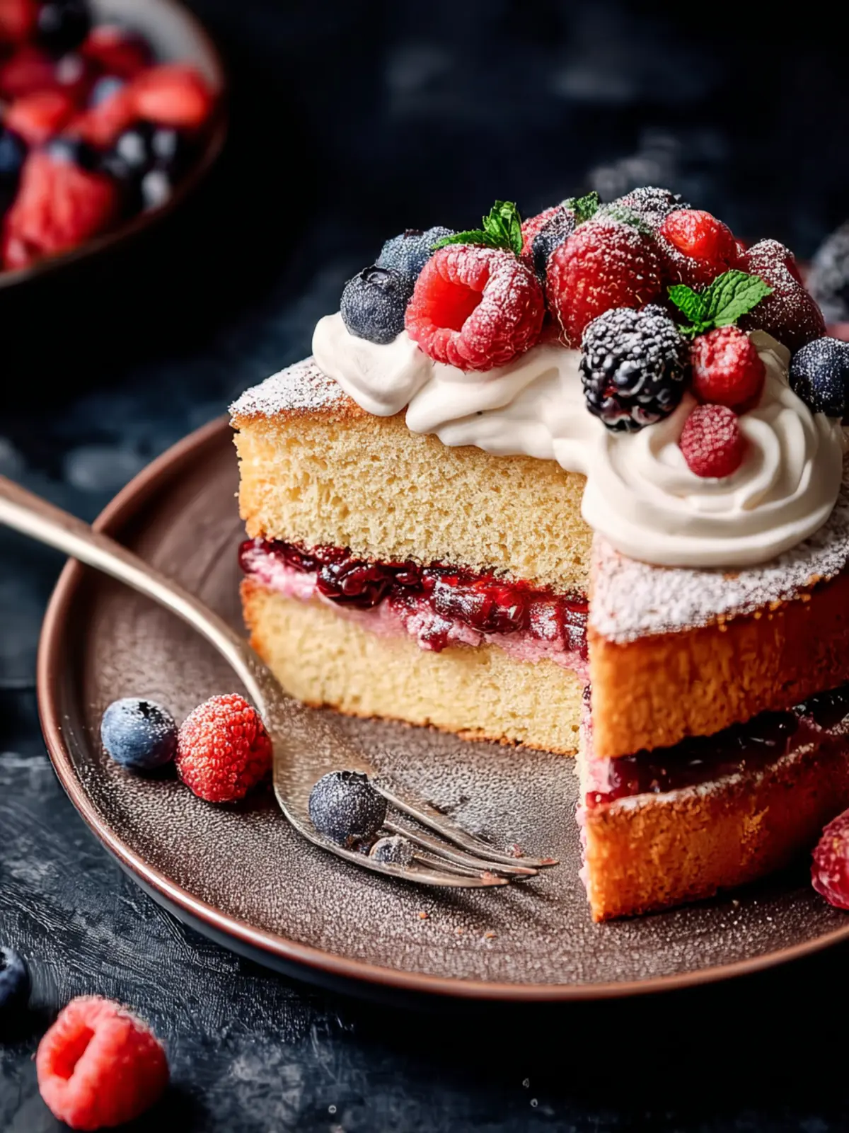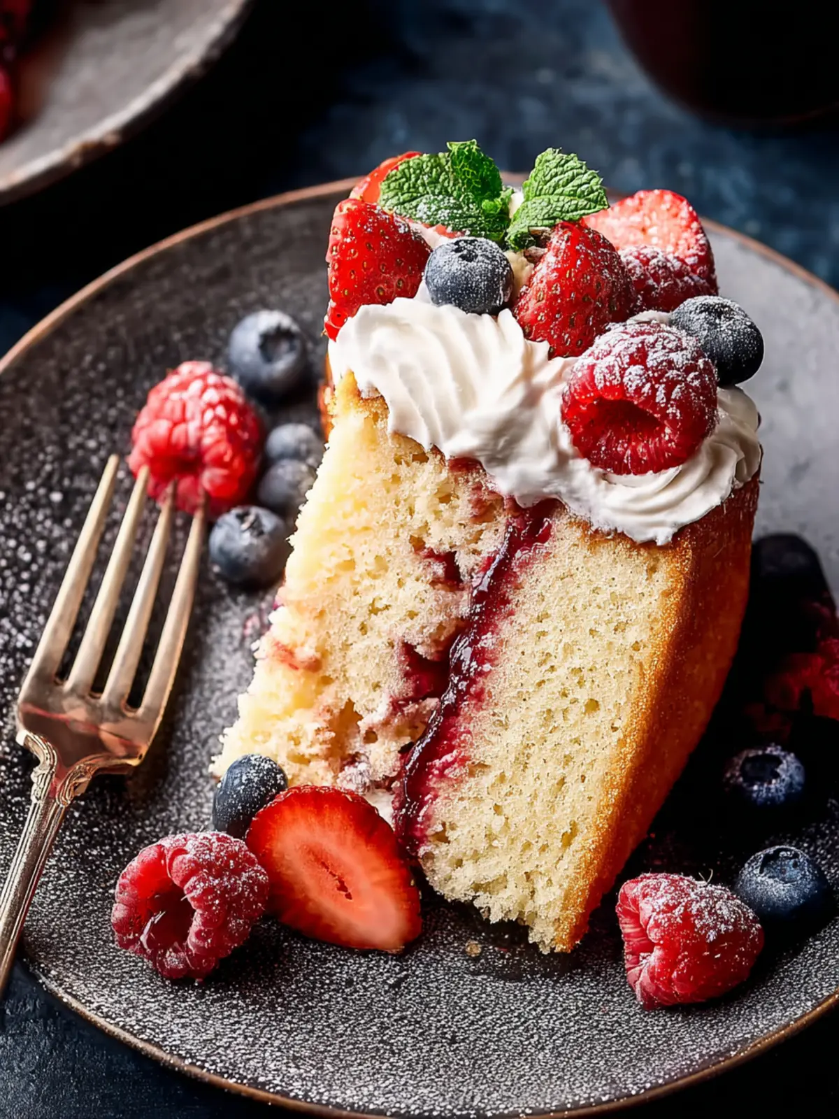 Presentation matters! Consider using a cake stand for height and drama. Place mint leaves as a garnish around the plate for a pop of color, or drizzle a berry coulis around the edge for a professional touch. Layering slices of the cake with cream and fruit on a platter can showcase the textures beautifully, inviting everyone to dig in.