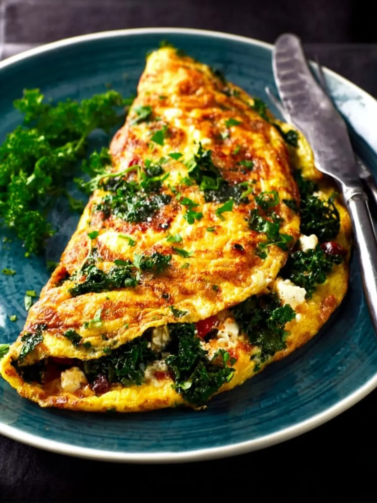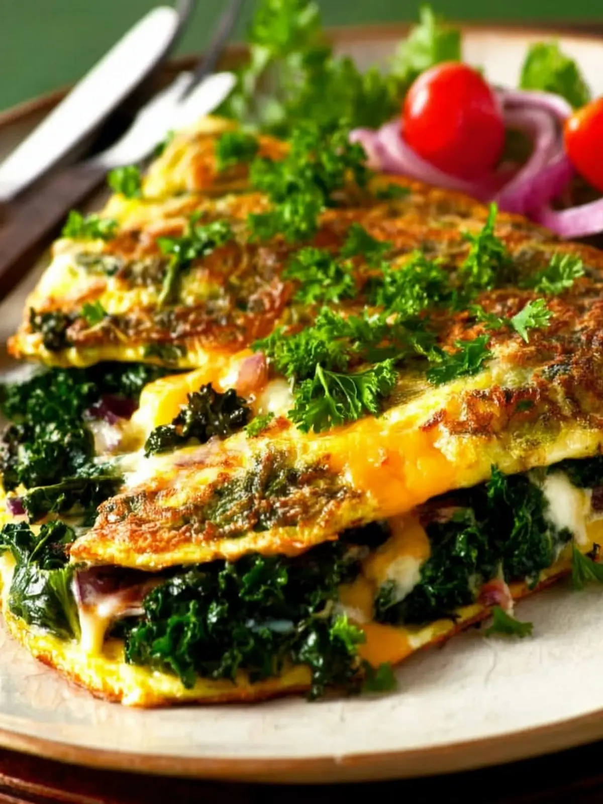 A delicious and nutritious kale and cheese omelette, perfect for breakfast or brunch.