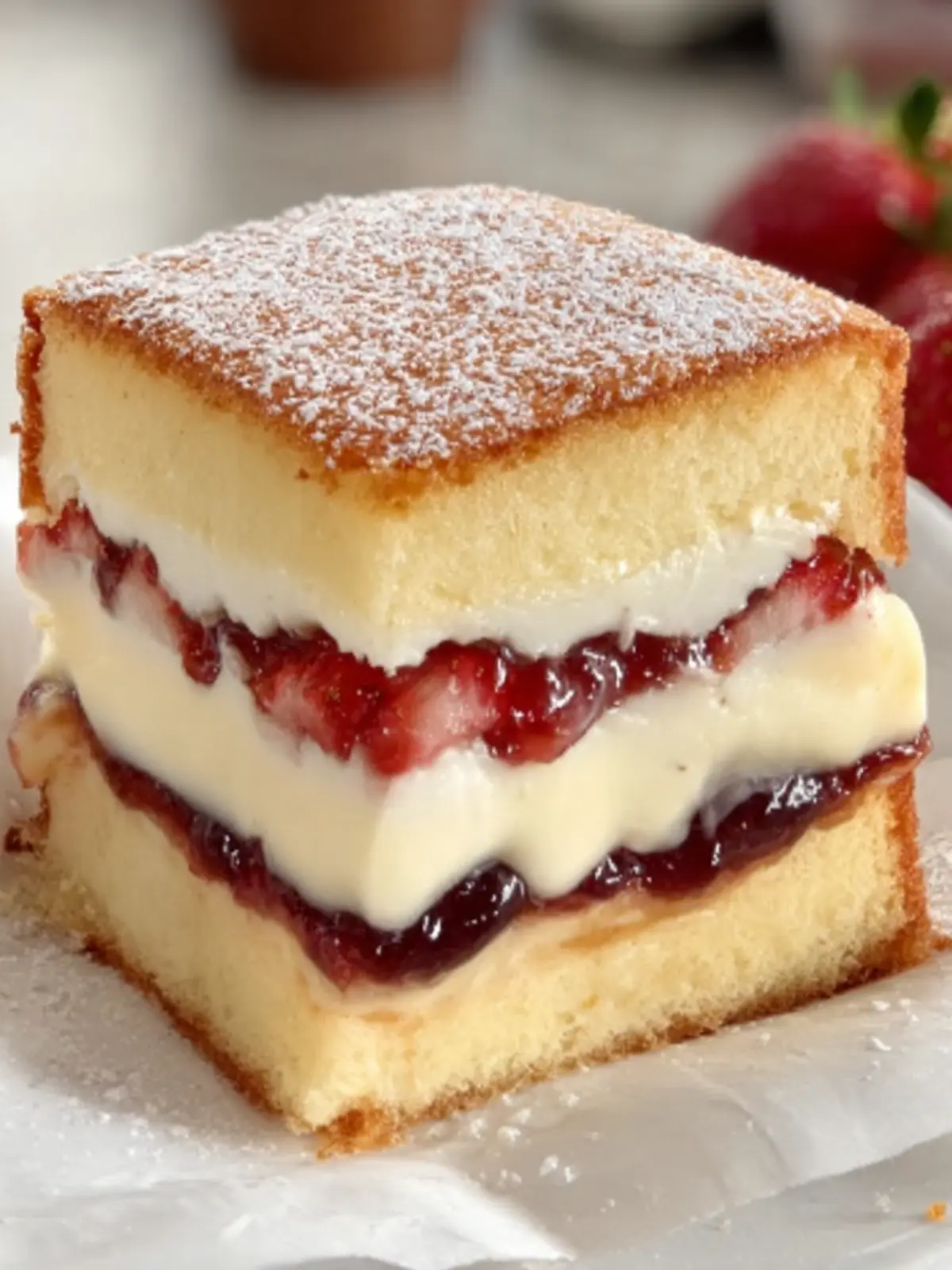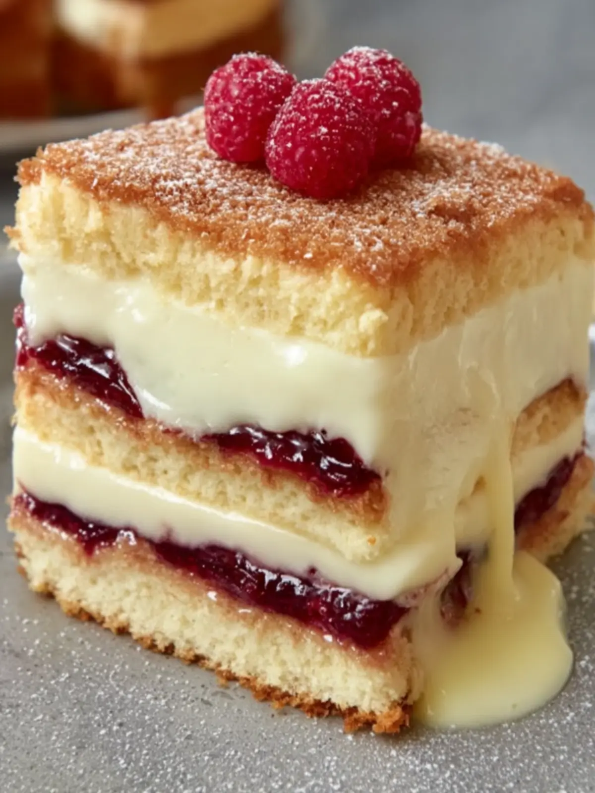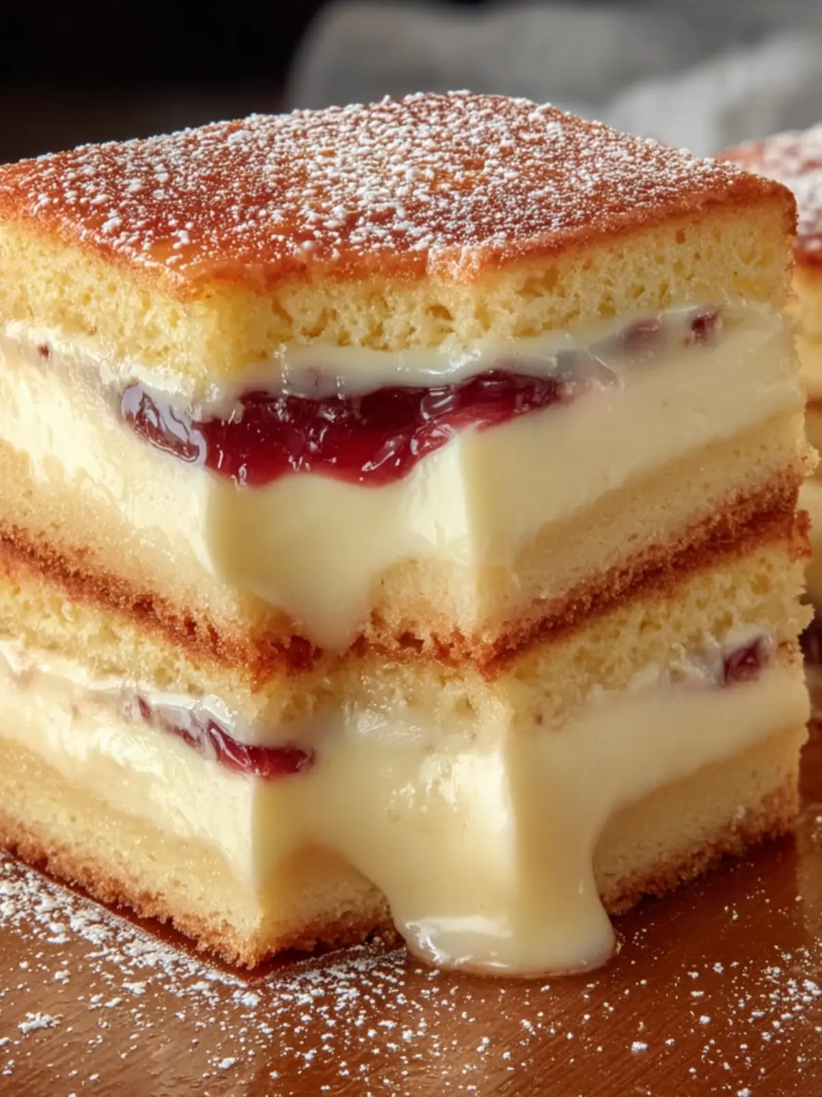 To finish off this impressive dessert, a light dusting of powdered sugar adds a touch of sweetness and a polished look. It’s the perfect final touch that says, “I’m here to impress!” This simple yet elegant addition makes your layered vanilla custard cake not only taste amazing but also visually striking.