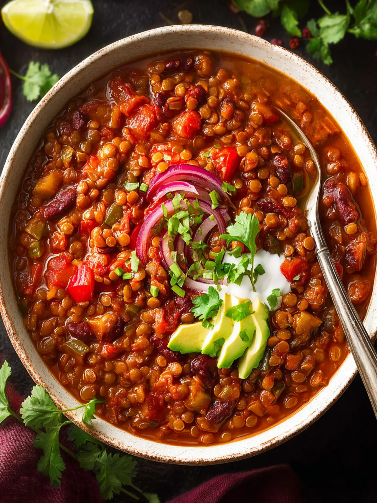 Toppings can elevate your lentil chili to new heights! Here are a few favorites: