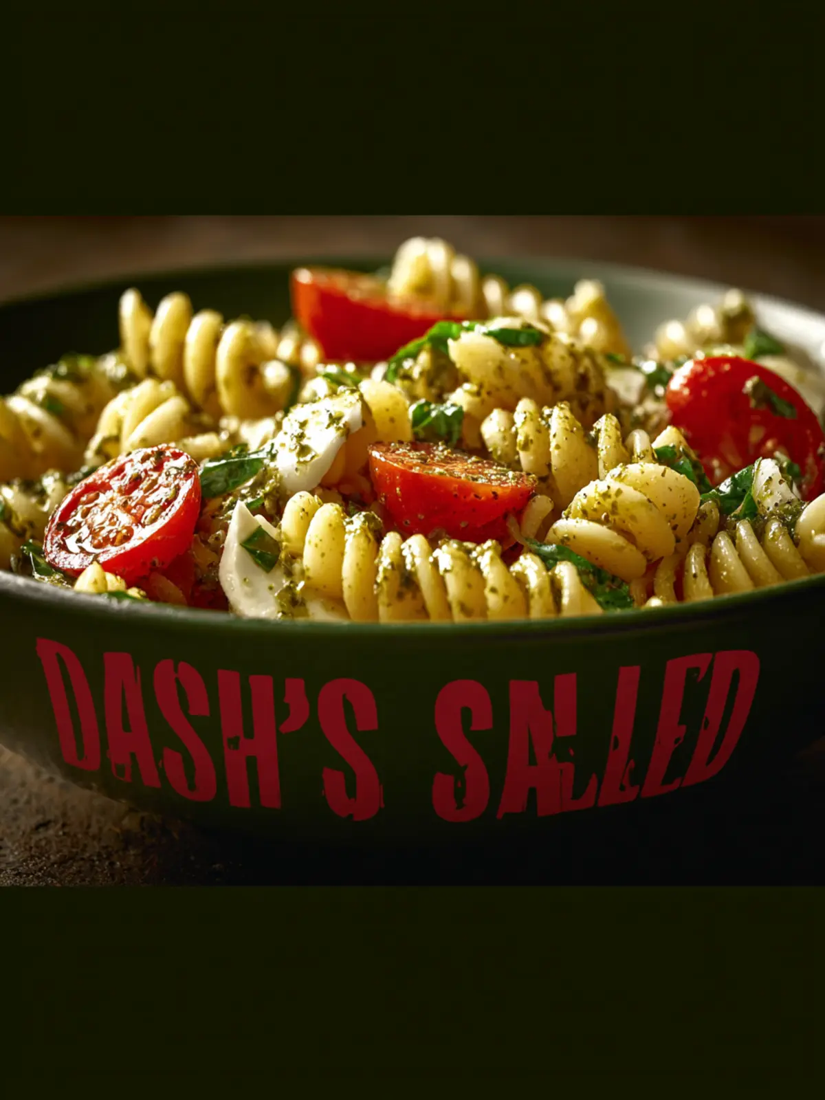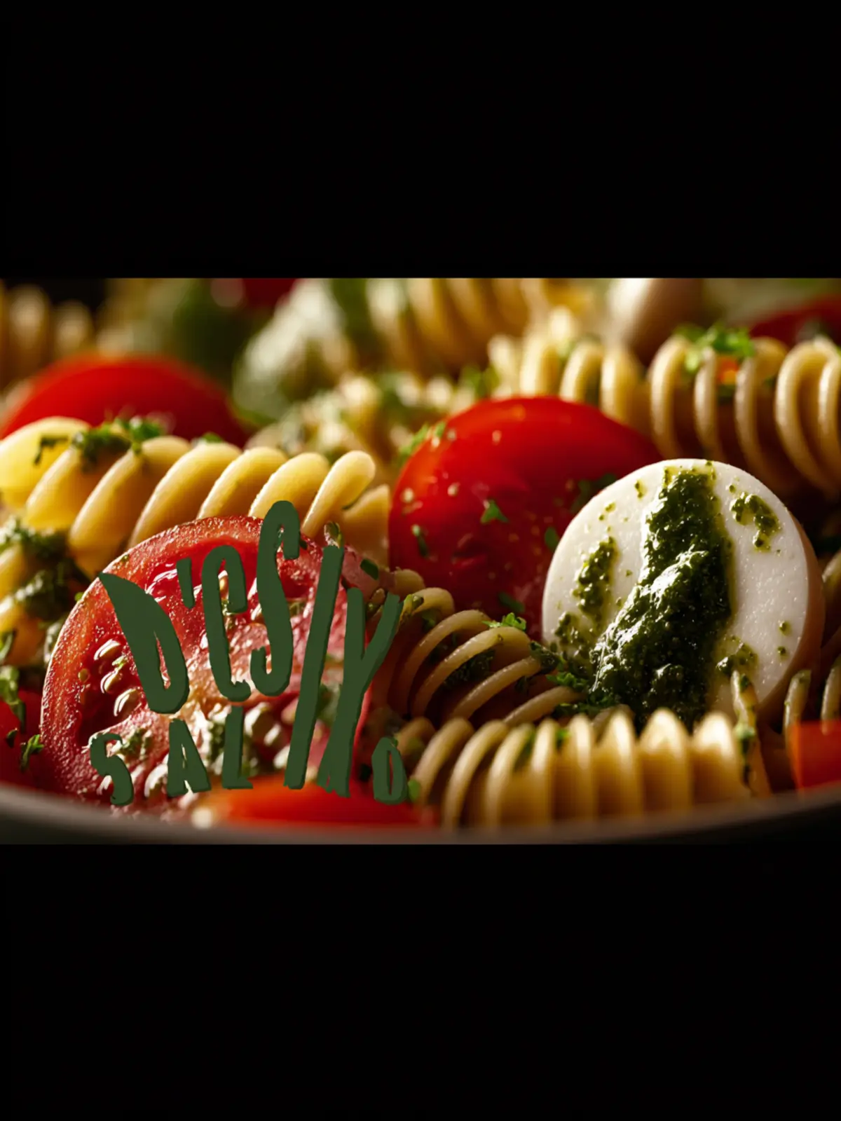 A refreshing pasta salad with basil pesto, cherry tomatoes, and mozzarella, perfect for summer gatherings.