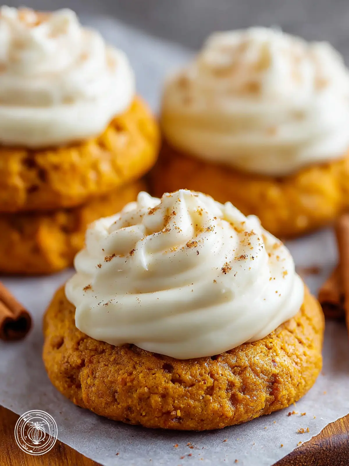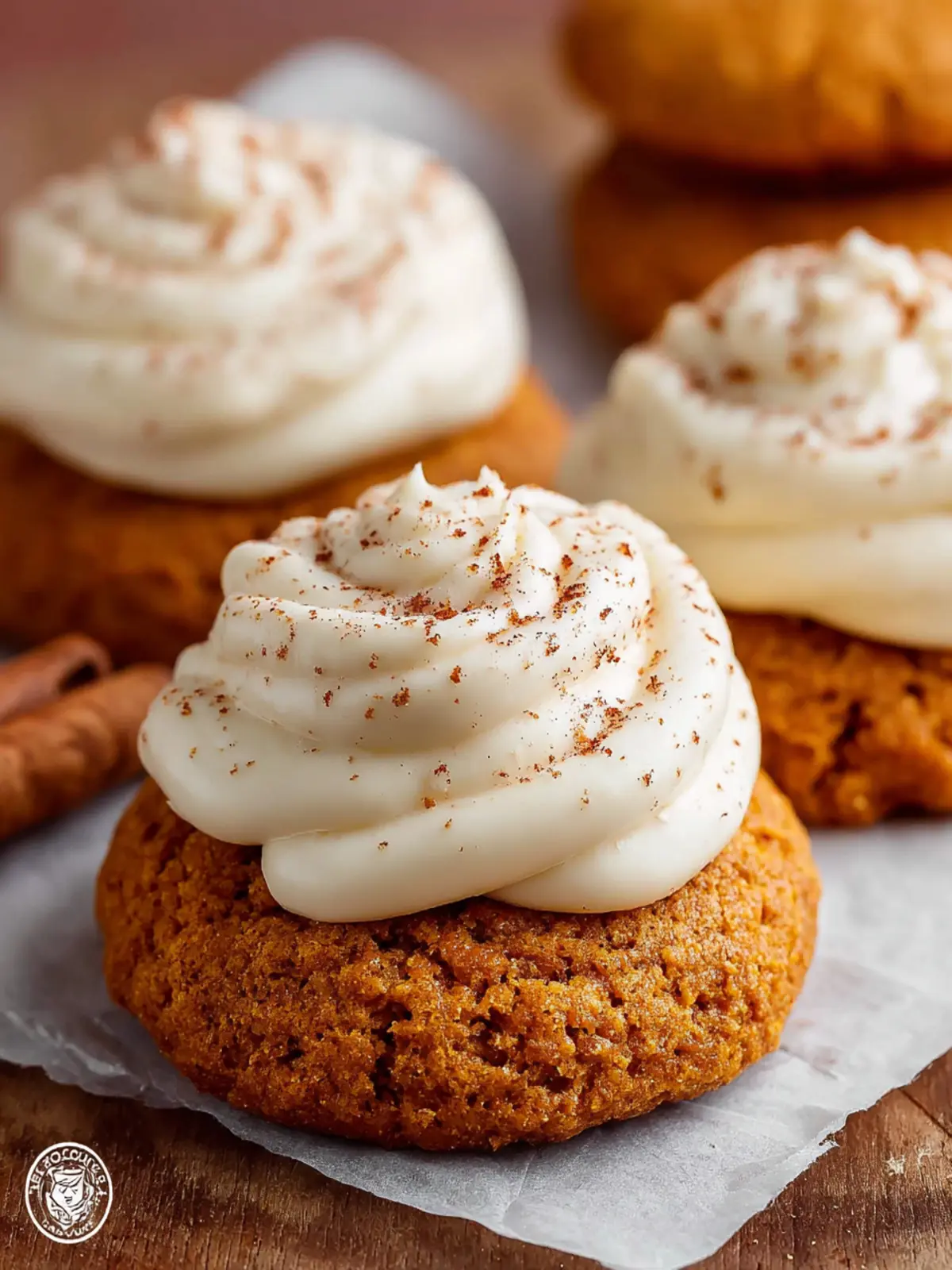 Delicious pumpkin cookies topped with creamy cream cheese frosting, perfect for fall!