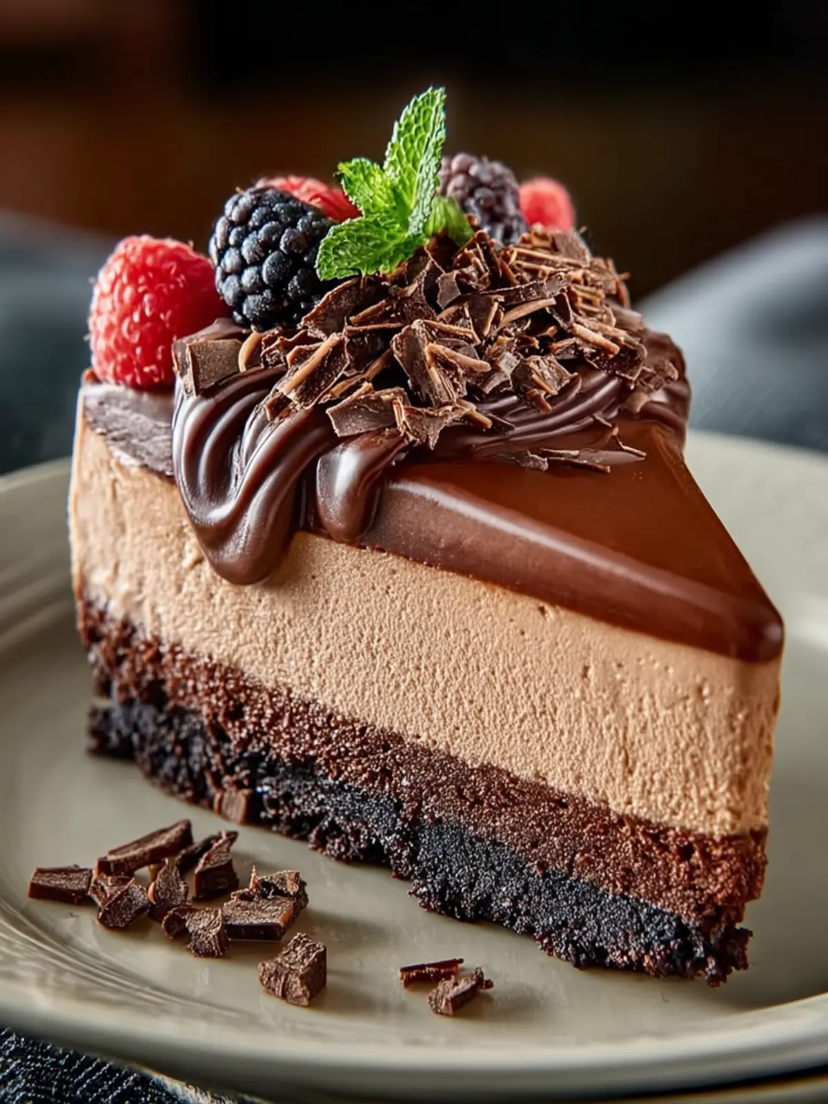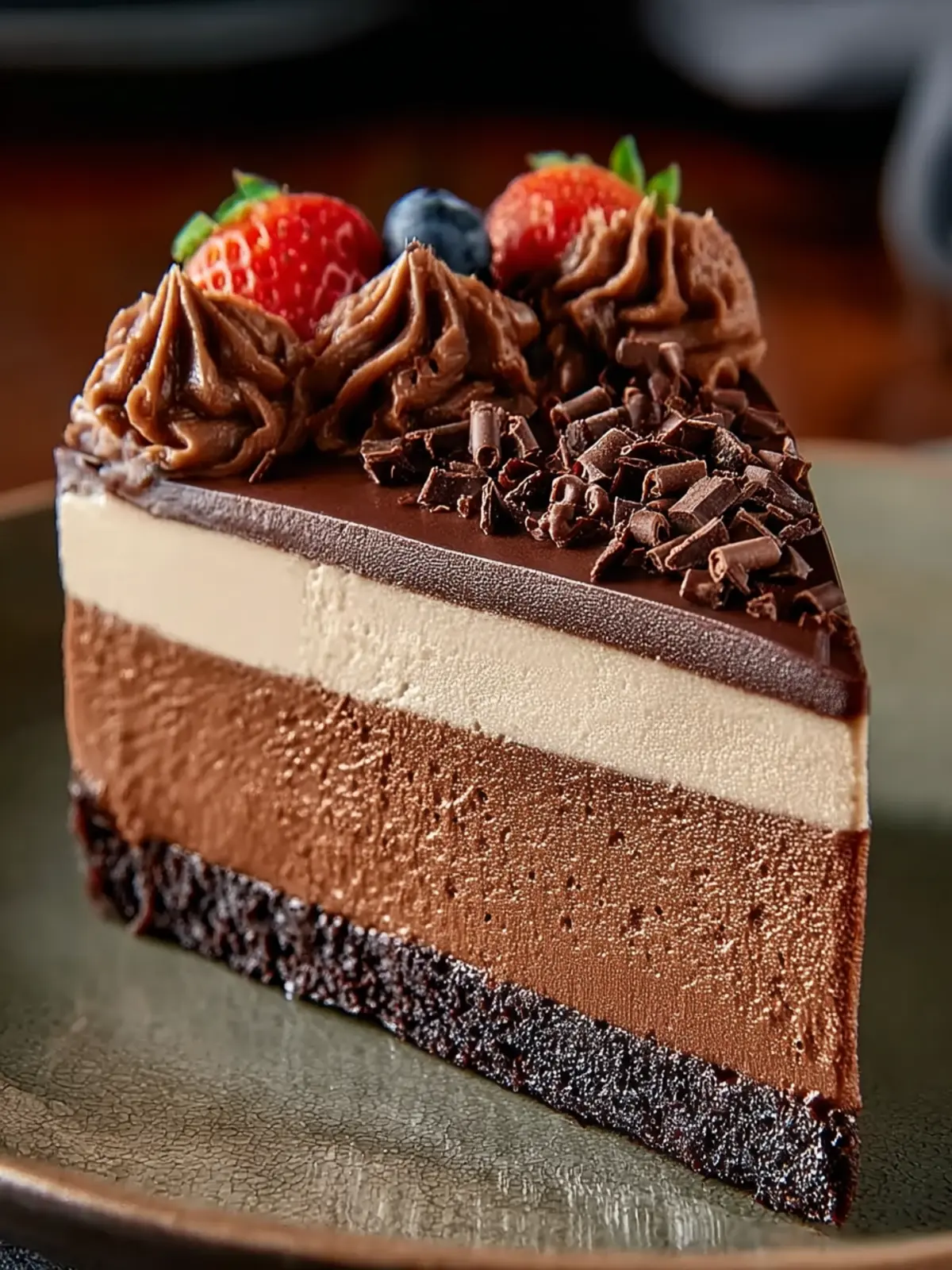 Perfect for Any Occasion: Whether you’re hosting a dinner party, celebrating a birthday, or just treating yourself after a long week, this triple chocolate mousse cheesecake is the ideal dessert. Its presentation is stunning, striking the perfect balance between elegance and decadence.