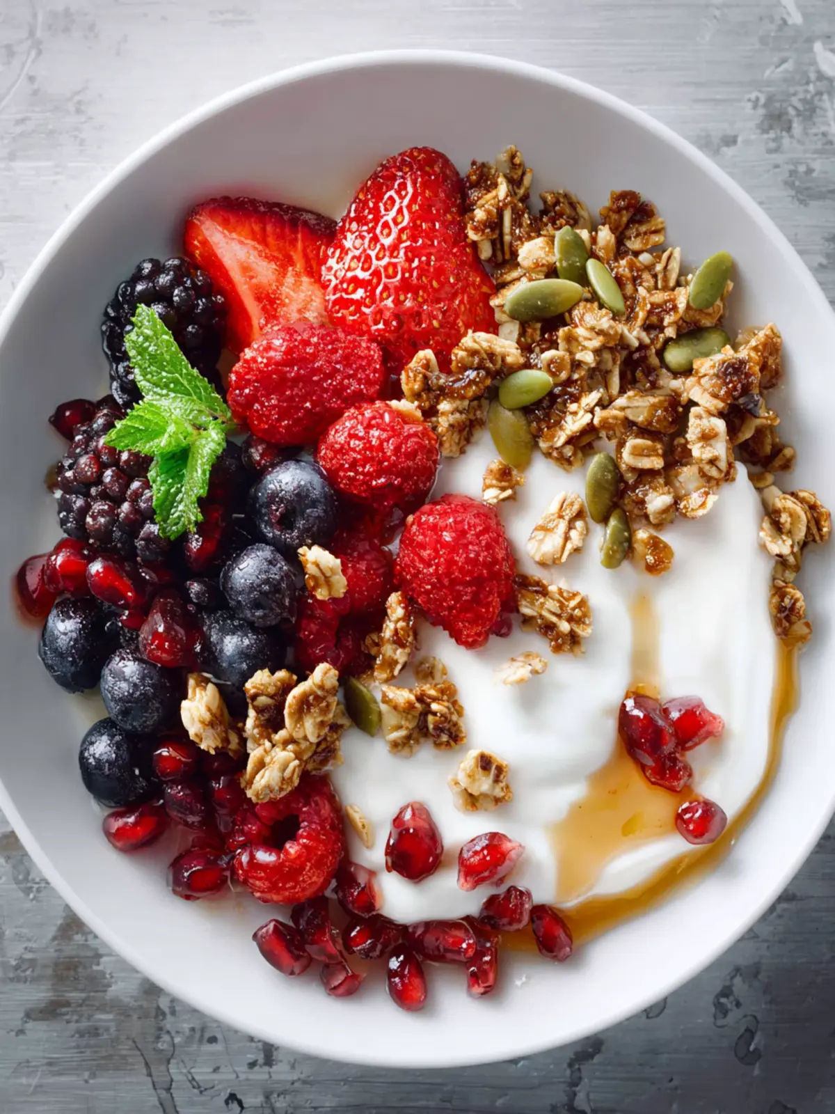 Fresh Fruits: Whether you toss in berries, banana slices, or seasonal fruits, they add a freshness that balances the creaminess of yogurt.